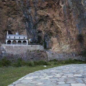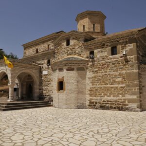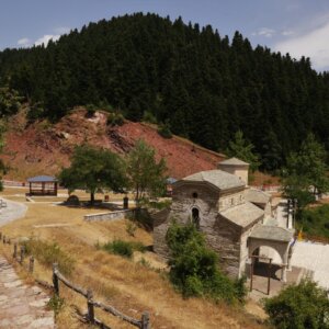 Μόλις τρία χιλιόμετρα μακριά από το χωριό , στον δρόμο που οδηγεί προς τα Τρία Ποτάμια και τα υπόλοιπα χωριά του Ασπροποτάμου, συναντά κανείς τον Ιερό Ναό Αγίου Νικολάου Ασφάκας. Ακολουθώντας μία διαδρομή μέσα στα έλατα και τους πλατάνους, βλέπει κανείς να ξεπροβάλλει, μέσα από τον βράχο, η μικρή πέτρινη εκκλησία, που αποτελεί στολίδι της περιοχής και προσελκύει πλήθος επισκεπτών.