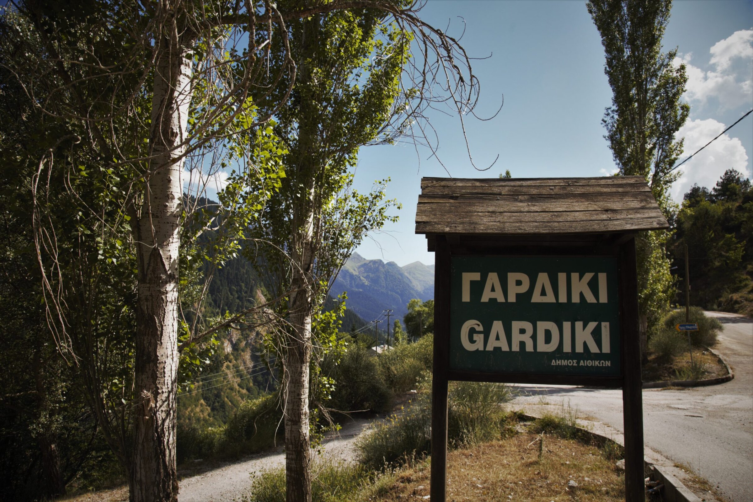 Το Γαρδίκι, είναι χτισμένο στον ορεινό όγκο της Κακαρδίτσας των Αθαμανικών ορέων (Τζουμέρκων) της Νότιας Πίνδου, και για την ακρίβεια στη νοτιοανατολική πλαγιά της κορυφής Κουρούνα (1.988μ.) και σε υψόμετρο 1.100μ. Απέχει 81 χλμ. από τα Τρίκαλα και έχει 134 κατοίκους. Το όνομά του, Γκαρντίστι στα βλάχικα, αποτελεί παραφθορά της λέξης “γκάρντου” που σημαίνει οχυρό, ταμπούρο. Ιστορικά, στην περιοχή που βρίσκεται σήμερα το Γαρδίκι, μνημονεύεται αρχαίος οικισμός με την πρωτεύουσα του στη θέση “Βρύσες”, κάπου 250μ. ψηλότερα από το συνοικισμό Παλαιοχώρι. Ακόμα και σήμερα σώζονται ερείπια και κομμάτια από κεραμίδια. Προπολεμικά είχαν γίνει ανασκαφές και βρέθηκαν αρχαία νομίσματα με τη λέξη “Αθαμάνων”. Πρώτος βασιλιάς της Αθαμανίας ήταν ο Αθάμας.