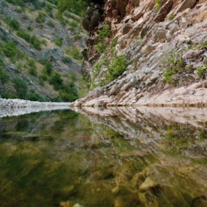 Στο φαράγγι υπάρχουν 3 παράπλευροι καταρράκτες και ο 4ος στο κυρίως ρέμα στο τέλος της διαδρομής, που βγαίνουν από τις πηγές της Κακαρδίτσας και του Κριάκουρα. Τα τρεχούμενα νερά σχηματίζουν φυσικές πισίνες με δροσιστικά και καθαρά νερά