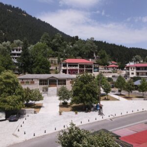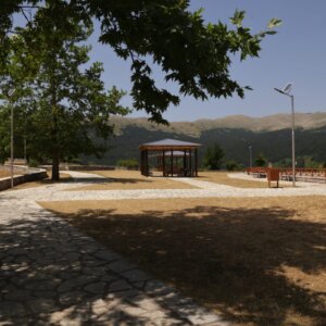 Στην είσοδο του χωριού βρίσκεται το Άλσος του Προφήτη Ηλία με το ομώνυμο πέτρινο εκκλησάκι. Διαθέτει σύγχρονη παιδική χαρά, αθλητικές εγκαταστάσεις και το κτίριο του πρώην δημαρχείου. Δίπλα, σε μια γραφική πλατειούλα με πέτρινη βρύση και παραδοσιακούς φανοστάτες, λειτουργεί η παραδοσιακή αγορά. Τα ξύλινα σπιτάκια των παραγωγών, προσφέρουν μια μεγάλη ποικιλία από τοπικά προϊόντα και αναμνηστικά.