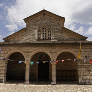 Ο Ιερός Ναός Κοιμήσεως της Θεοτόκου είναι η κεντρική εκκλησία του χωριού. Ένας ναός σε ρυθμό βασιλικής με τρούλο, χτισμένος με πέτρα, το 1700 μ.Χ. Η μητρόπολη του χωριού λειτουργεί κάθε Κυριακή του καλοκαιριού και πανηγυρίζει στις 15 Αυγούστου. Το ετήσιο πανυγήρι πραγματοποιείται της Παναγίας από 14 εώς 17 Αυγούστου στην πλατεία του χωριού το οποίο μοιάζει με πολυσύχναστη πόλη. Στις 17 Αυγούστου γίνεται ο χορός των γερόντων. Στο πρώτο μέρος η ορχήστρα και το πλήθος αποτείουν φόρο τιμής στους γεροντότερους τραγουδώντας τους ενώ εκείνοι είναι καθισμένοι ενώ στο δεύτερο μέρος πραγματοποιείται ο πολεμικός χορός στον οποίο οι γεροντότεροι χορεύοντας αναπαριστάνουν πολεμικές σκηνές. Μετά τον πολεμικό χορό, χορεύουν και τραγουδούν τοπικά τραγούδια κρατώντας στα χέρια τους αναμμένες λαμπάδες. Η ιερά μονή Αγίας Τριάδας είναι παραδοσιακή, πέτρινη εκκλησία, χτισμένη το 1750 μ.Χ, από το Γαρδικιώτη ιερομόναχο Ιωαννίκιο, και αποτελεί τη δεύτερη παλαιότερη εκκλησία του χωριού. Τιμάται στη μνήμη της Αγίας Τριάδος και πανηγυρίζει στις 6 Αυγούστου, της Μεταμορφώσεως του Σωτήρος. Με υπουργική απόφαση, και οι δύο αυτοί ναοί, έχουν χαρακτηριστεί ως ιστορικά, διατηρητέα μνημεία.